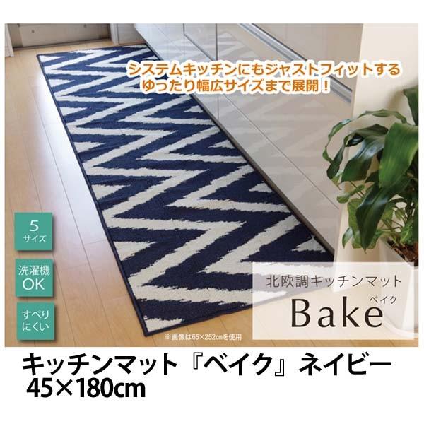 キッチンマット 北欧 おしゃれ 洗える ベイク ネイビー 約45180cm