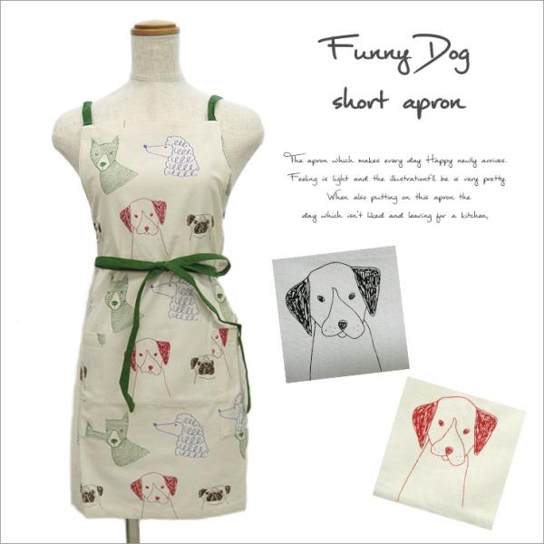 北欧風 ショートエプロン キッチンエプロン 犬 イヌ いぬ かわいい 定番 エプロン 胸当てエプロン 前掛け おしゃれ 綿100 コットン ナチュラル キッチン