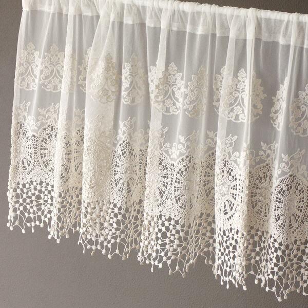 可愛いカフェカーテン 45cm丈 レース 目隠し おしゃれ 刺繍