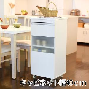 キッチンの隙間収納 キッチンキャビネット スリム 幅40cm キャスター付き 北欧 奥行40 扉付き ミニ食器棚 Ruo 2