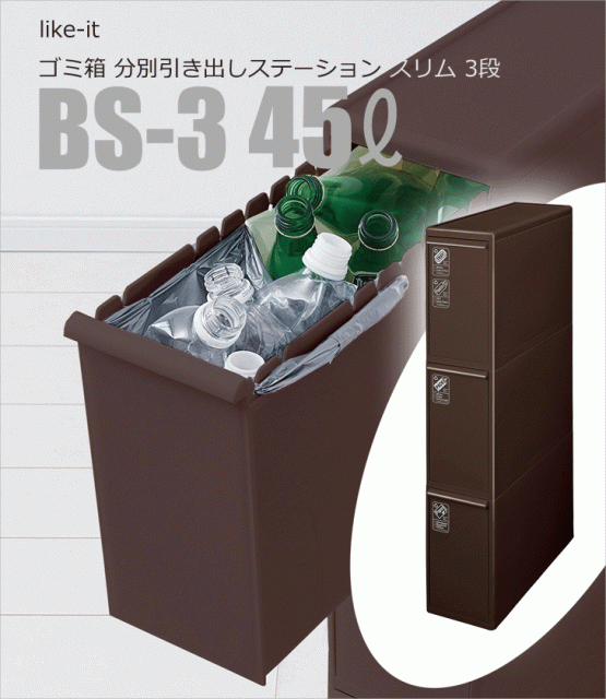 送料無料吉川国工業所 Like It 分別ゴミ箱 分別スリム 分別引出しステーション スリム3段 ブラウン Bs 3 ごみ箱 リビング キッチン Au Wowmaワウマ