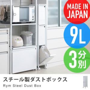 スチール製ダストボックス Rym 9リットル3分別 約幅20cm キャスター付き ごみ箱 キッチン ゴミ箱 分別 スリム