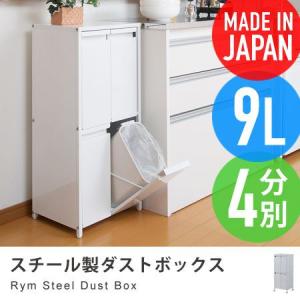 スチール製ダストボックス Rym 9リットル4分別 約幅35cm キャスター付き ごみ箱 キッチン ゴミ箱 分別 スリム