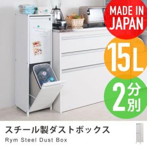 スチール製ダストボックス Rym 15リットル2分別 約幅26cm キャスター付き ごみ箱 キッチン ゴミ箱 分別 スリム