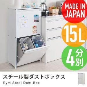 スチール製ダストボックス Rym 15リットル4分別 約幅46cm キャスター付き ごみ箱 キッチン ゴミ箱 分別 スリム
