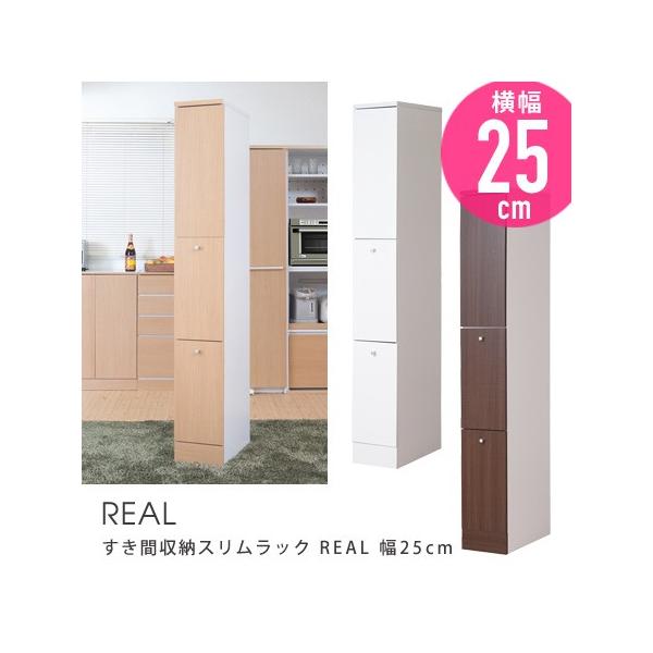 すき間収納スリムラック Real 幅25cm 2分別ダストボックス付