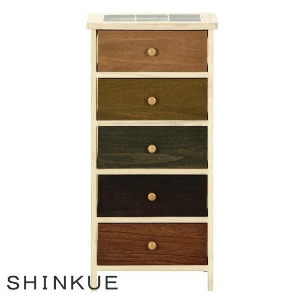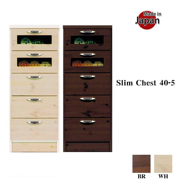 チェスト 木製 スリムチェスト 幅40 5段 ローチェスト 完成品