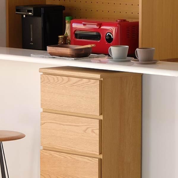 チェスト 幅60 3段 ロータイプ 引き出し3杯 スライドレール 木製 ナチュラル 完成品 衣類収納 キッチンキャビネット キッチン収納
