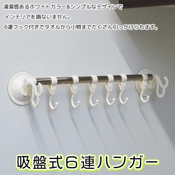 耐荷重 5 Kg バス キッチン 生活 収納 6連 フック ラック強力吸盤