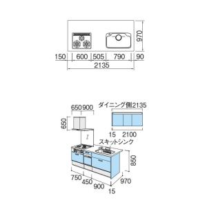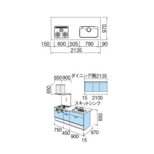 リクシル センターキッチン 奥行97cm 間口2135cm グループ3