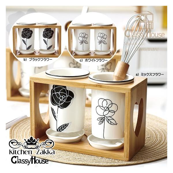 キッチンツールスタンド 箸立て 水切り セラミック お洒落 可愛い キッチン雑貨 北欧 クラッシィハウス ナチュラリーキッチンツール2連