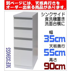 キッチン シンクサイド収納 洗面台横収納 幅約35高さ約90奥行約55cm台輪付きmf359055