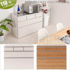 ステンレスキッチンカウンター幅110 上引出3杯 木目調ナチュラル カウンター キッチンカウンター レンジ台 レンジラック代引不可送料au Wowmaワウマ