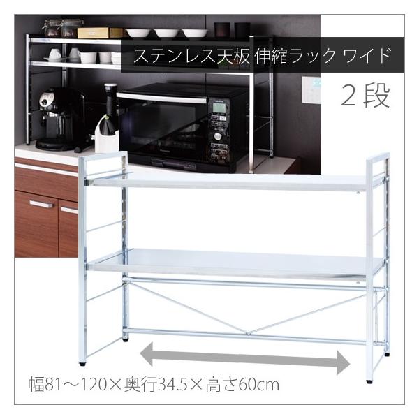 レンジ台 ステンレス天板伸縮2段ラックワイド幅81 120奥行35高さ60キッチンシンク上置き棚小物ラップ収納広さ調節頑丈夫清潔日本製 足立製作所