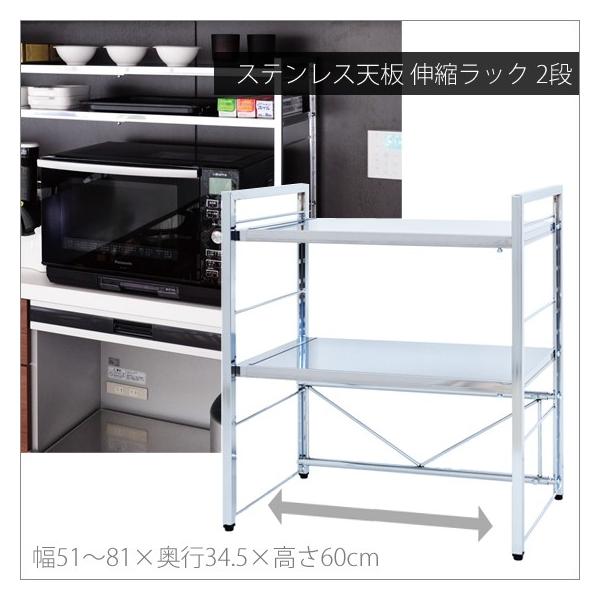 レンジ台 ステンレス天板伸縮2段ラック幅51 81奥行35高さ60