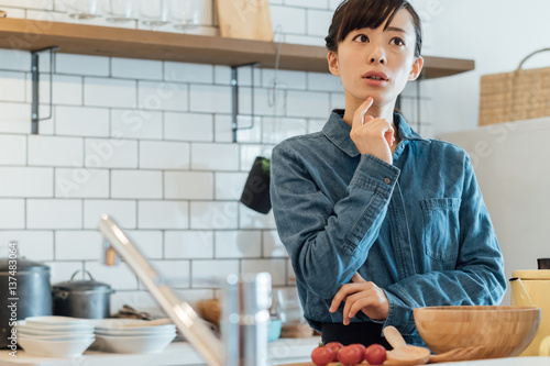料理で女性のキッチン 1人のストックフォトや画像を多数ご用意