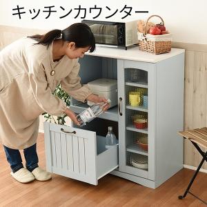 女性の一人暮らしに フレンチカントリー キッチンカウンター 幅75 ミニレンジ台 炊飯器 収納 おしゃれ かわいい アンティーク Ruu