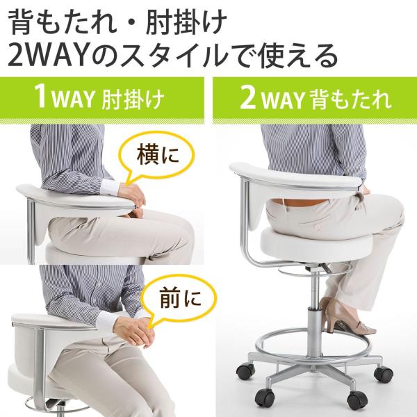2wayキッチンチェアキャスターアジャスター両対応回転椅子ホワイト