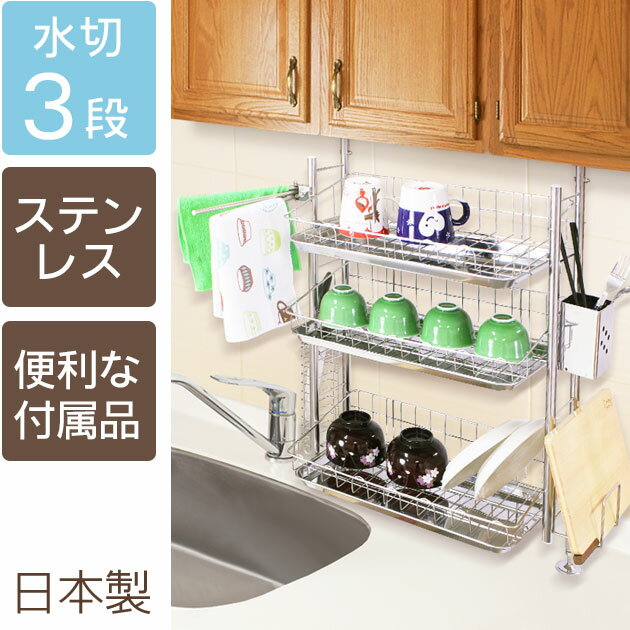 水切りラック 国産 ステンレス 突っ張りキッチンラック ワイド 3段 送料無料 つっぱりラック Au Wowmaワウマ