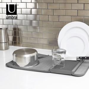 Umbra ミニドライングマット ドライングマット キッチンマット 水切りマット ディッシュラック 調整可 収納 グレー ゴムバンド付き