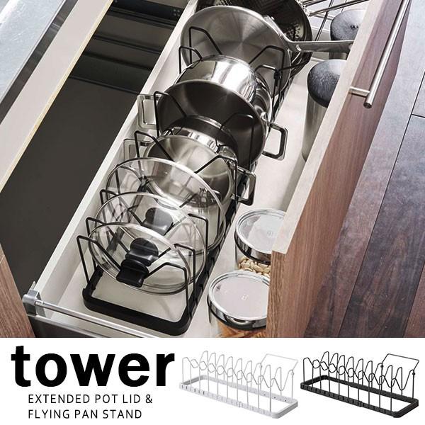 シンク下 フライパン鍋蓋スタンド タワーtowerホワイト02280ブラック02281 山崎実業 Yamazaki フライパン収納 鍋蓋収納 キッチン収納リライフプラザ 生活雑貨館