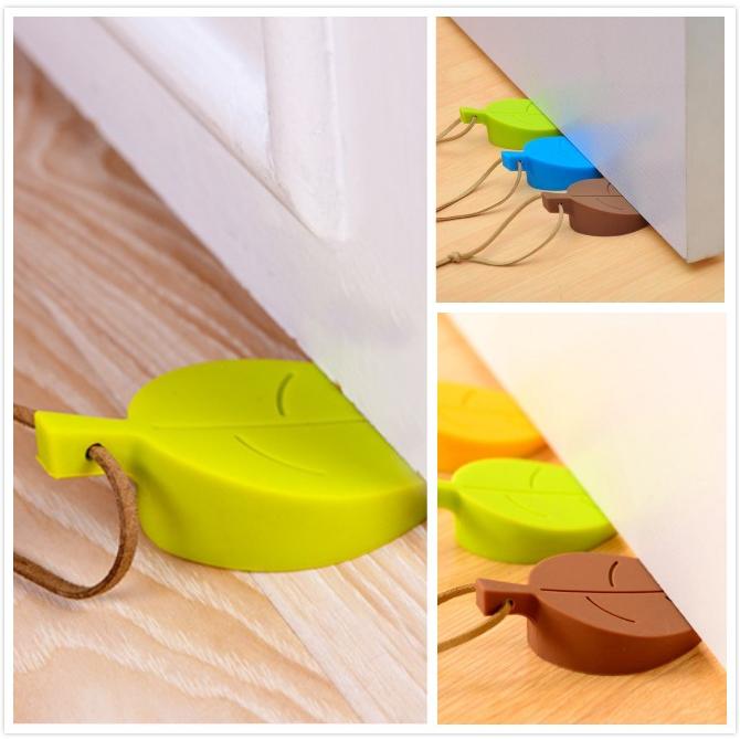 インテリアとしても可愛い リーフモチーフ ドアストッパー シリコン製 4色セット