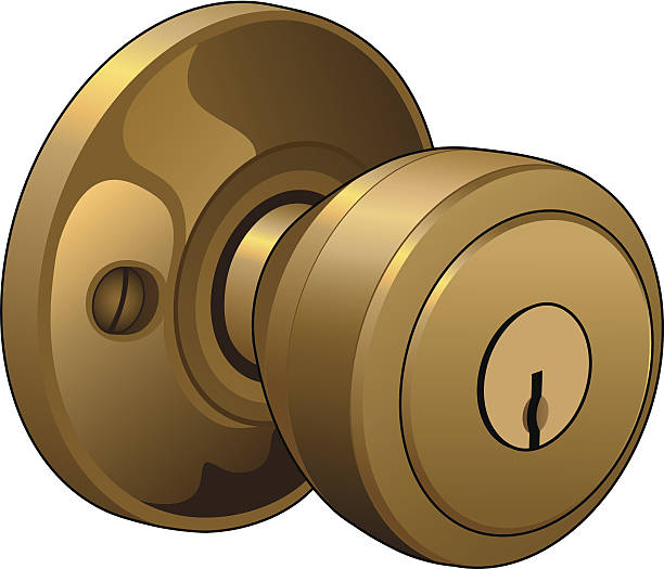 ドアノブと鍵防犯イメージ 白バックのイラスト素材
