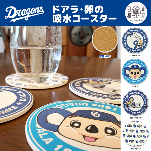中日ドラゴンズマスコットキャラクタードアラ卵の吸水コースター 卵の殻 東京卵日和コラボ 水滴 吸収 速乾 コップ グラス 敷物au Wowmaワウマ