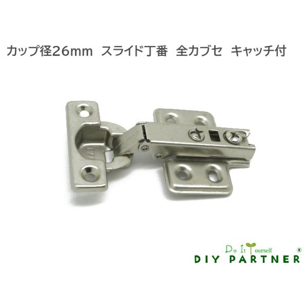 メール便可 26φ スライド丁番 全カブセ 12mm キャッチ付 diy 取り換え 扉金具 ドア金具