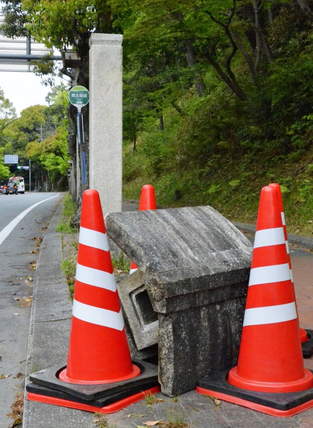 石灯籠落ち81歳歩行者死亡 バスのサイドミラー接触 写真共同