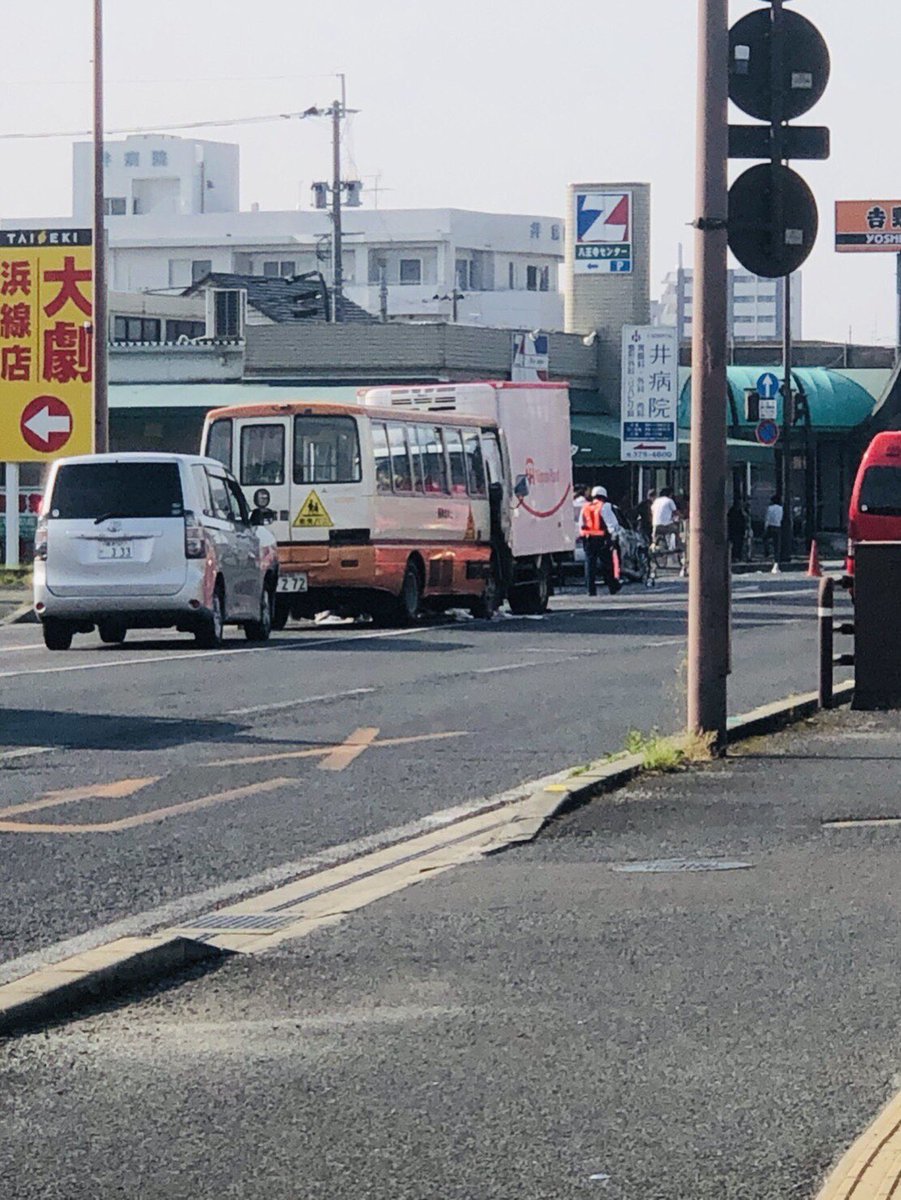 Tweet 熊本市中央区でトラックと幼稚園バス正面衝突する事故