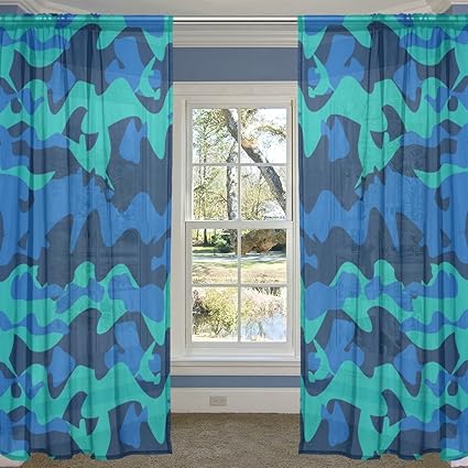 Amazonalirea Camo海色薄手カーテンパネルチュール