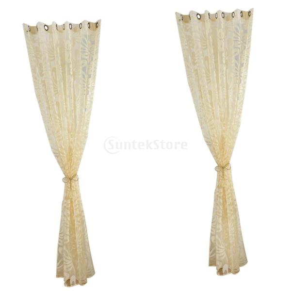 ジャカード 花柄 薄手 チュール カーテン レースカーテン リビングルーム 客間 飾り 全3色2サイズ ベージュ 250cmx100cm