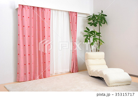 カーテン リラックスチェア リビングルーム インテリアの写真