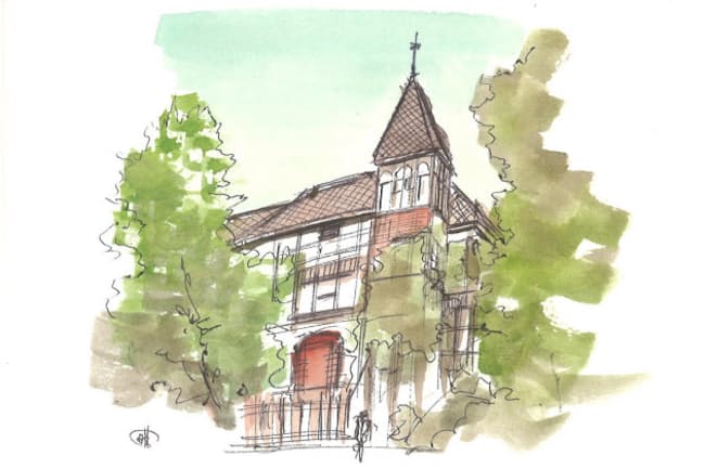 簡単スケッチラグビースタジアム公園 絵画 水彩で風景