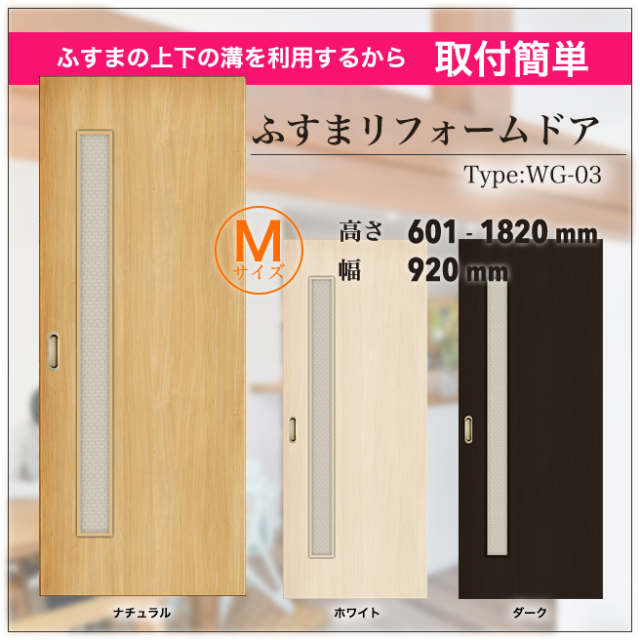 取付簡単洋風建具ふすまリフォーム ドアwg 03 Mサイズふすまの枠のサイズがそのまま活かせますmサイズ601 1820mm920mm