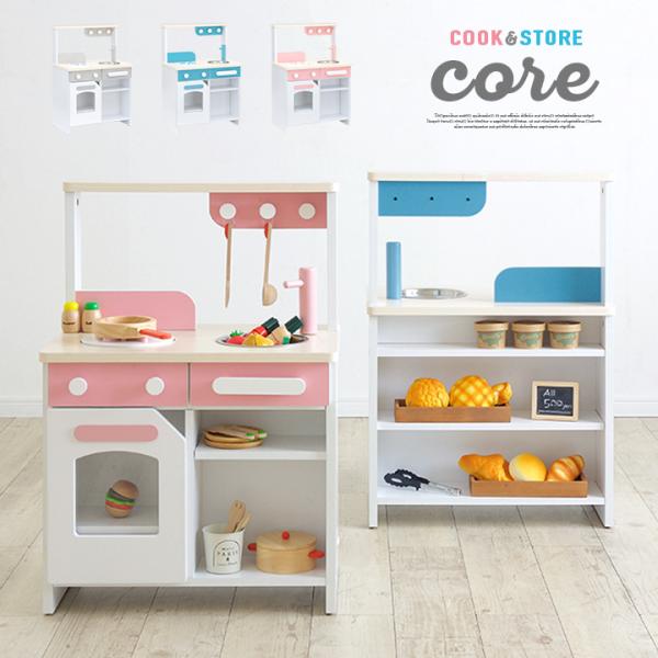 組立品ワイドタイプボウルシール付お店屋さんにもなる ままごとキッチン Cookstore Coreコアプラス 3色対応 木製 お店屋さんごっこ ままごとセット ごっこ遊びトイ レジスター キャスター付き Rvw家具の直販 スーパーカグ