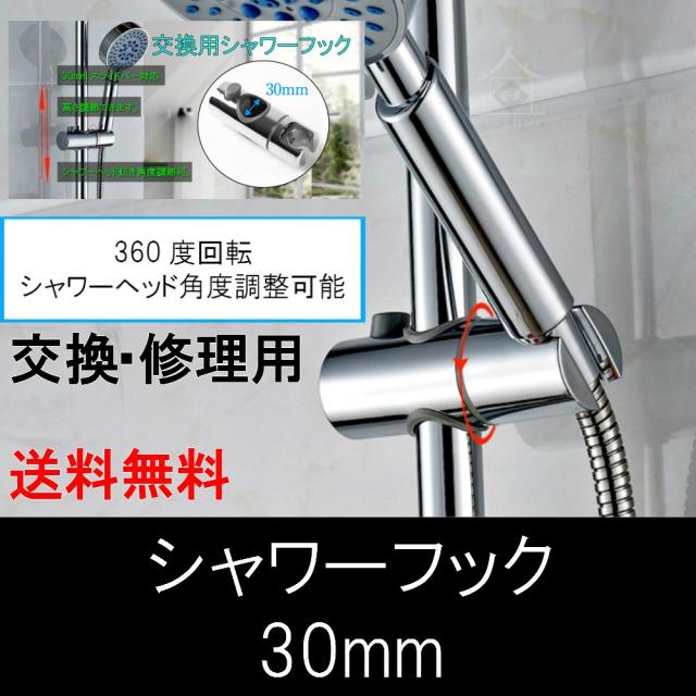 シャワーフック 交換用 直径 30mm 32mm 28mm 25mm スライドバー に対応 360度 角度調整 スライド式 シャワーホルダー