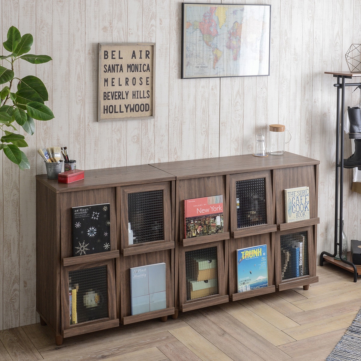 リビングユニット収納シリーズ 4枚フラップ扉キャビネットbr