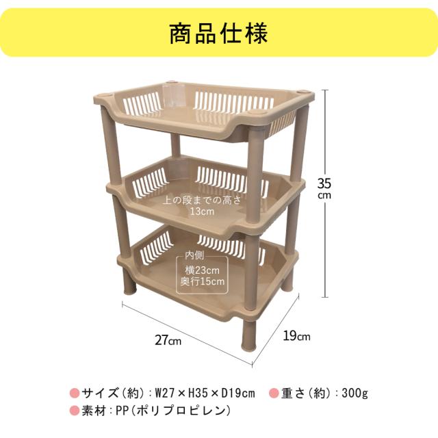 多用途 3段収納棚 プラスチック収納ラック クローゼットの中 浴室 バスルーム トイレ シンク下 隙間 卓上収納 調味料 組み立て式 水切りタイプ Rim Tx J3
