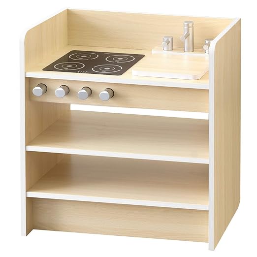 Rizkiz おままごとキッチン 2wayタイプ ナチュラル 裏返すと収納ラックとして使える リバーシブル 木製 安心安全設計 子供用 組立式