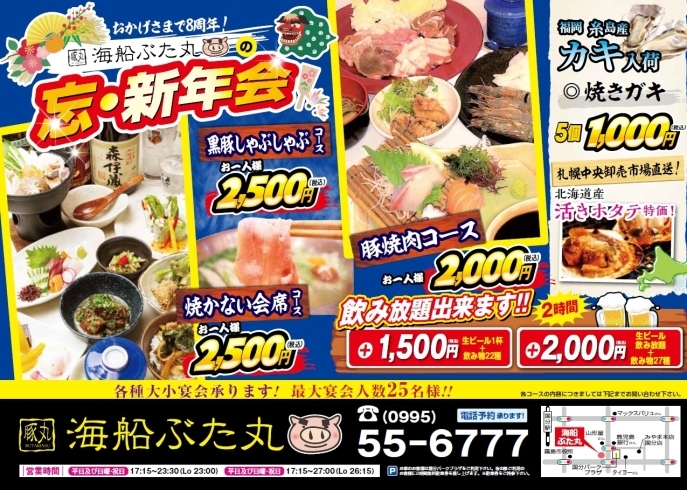 海船ぶた丸 国分店居酒屋ネット予約可でパーティ宴会